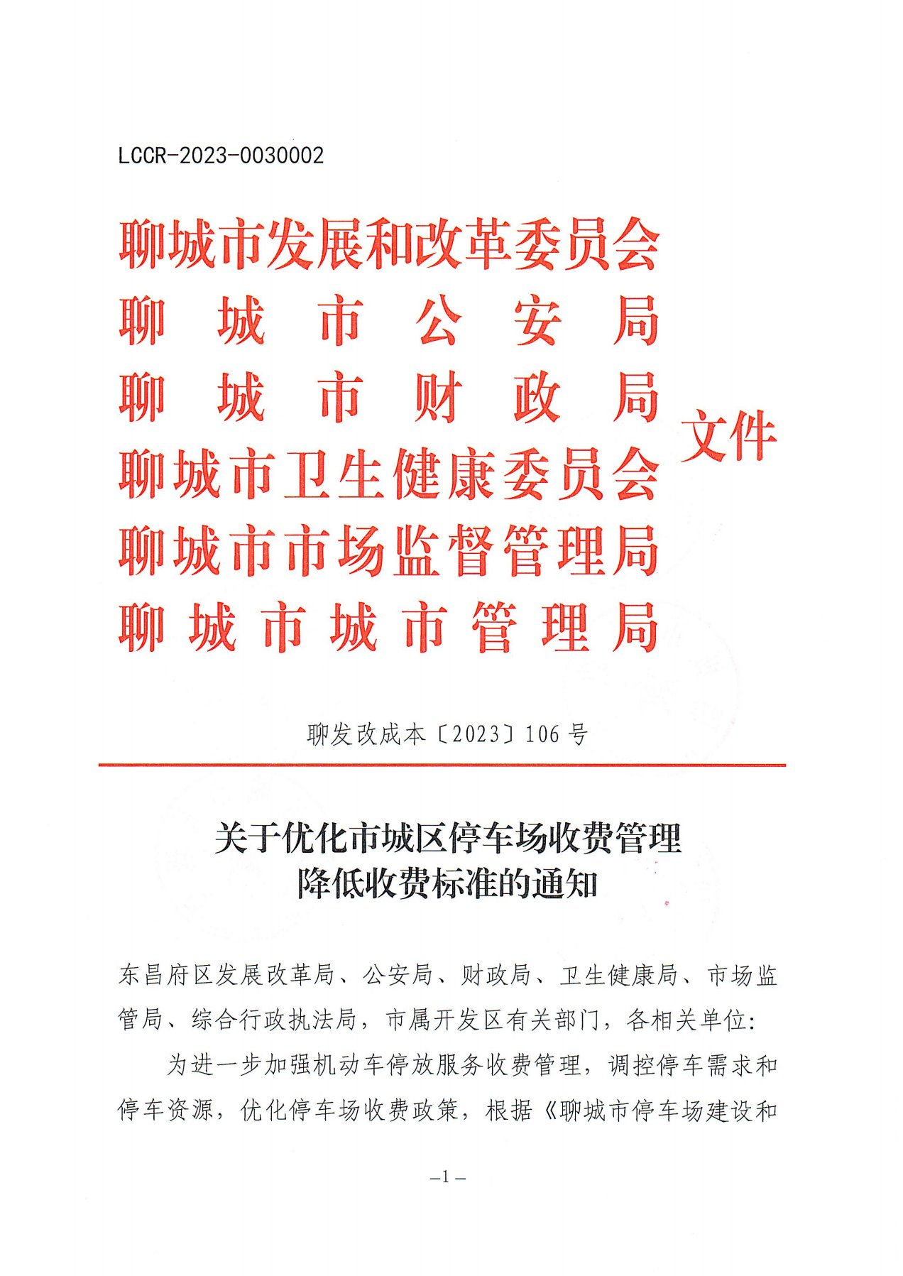 关于优化市城区停车场收费管理降低收费标准的通知